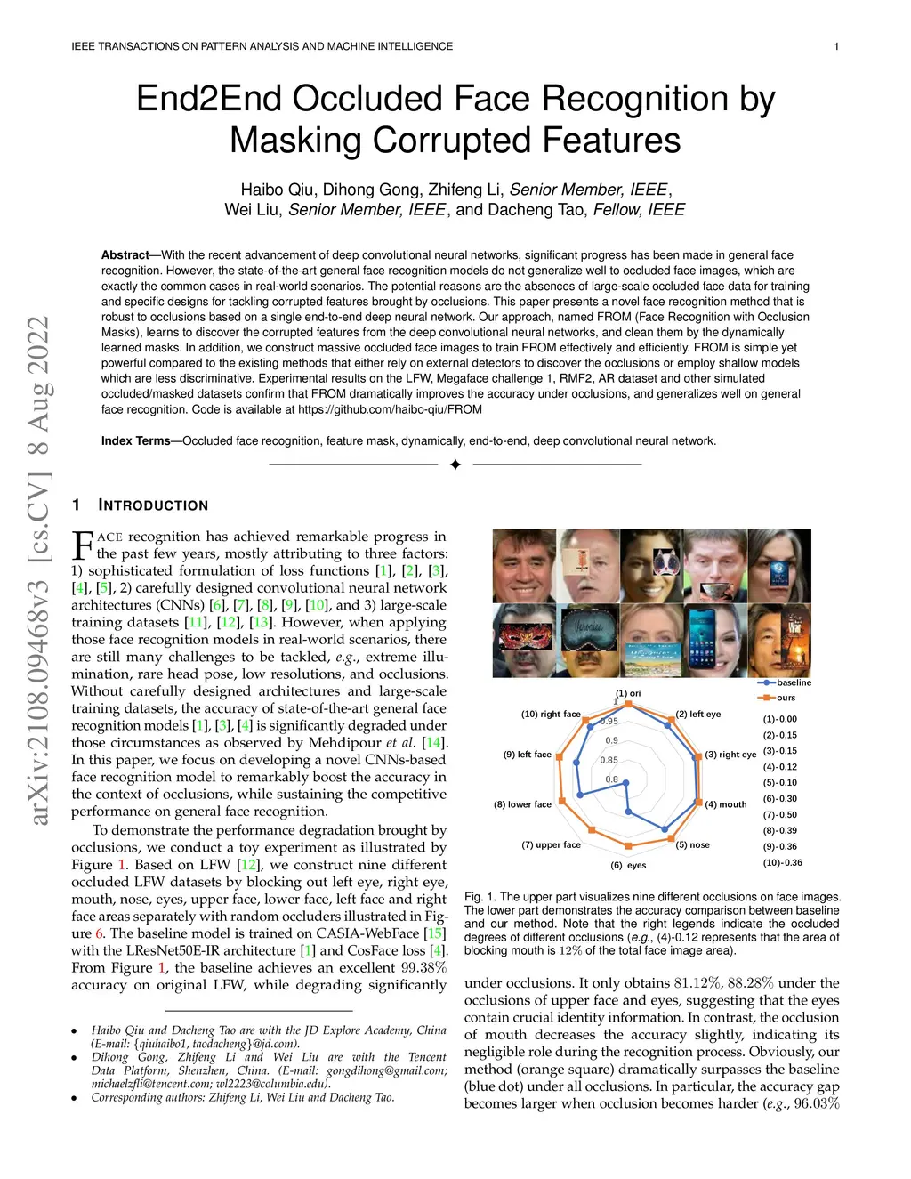 End2End Occluded Face Recognition by Masking Corrupted Features