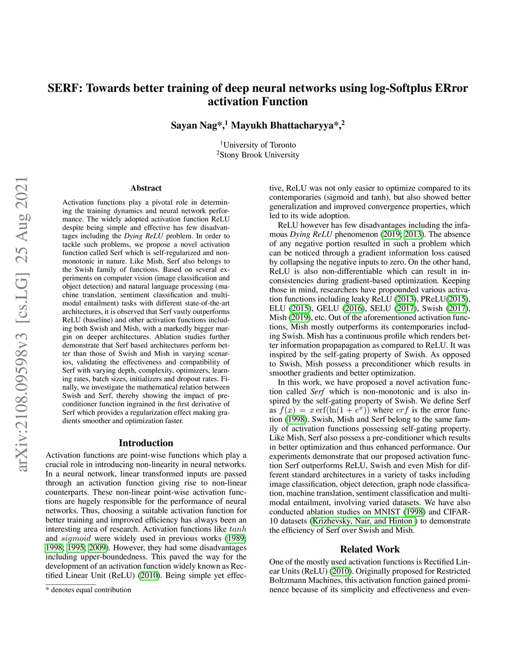 Activation functions play a pivotal role in determining the training dynamics and neural network performance. The widely adopted activation function ReLU despite being simple and effective has few disadvantages including the Dying ReLU problem. In order to tackle such problems, we propose a novel activation function called Serf which is self-regularized and nonmonotonic in nature. Like Mish, Serf also belongs to the Swish family of functions. Based on several experiments on computer vision (image classification and object detection) and natural language processing (machine translation, sentiment classification and multimodal entailment) tasks with different state-of-the-art architectures, it is observed that Serf vastly outperforms ReLU (baseline) and other activation functions including both Swish and Mish, with a markedly bigger margin on deeper architectures. Ablation studies further demonstrate that Serf based architectures perform better than those of Swish and Mish in varying scenarios, validating the effectiveness and compatibility of Serf with varying depth, complexity, optimizers, learning rates, batch sizes, initializers and dropout rates. Finally, we investigate the mathematical relation between Swish and Serf, thereby showing the impact of preconditioner function ingrained in the first derivative of Serf which provides a regularization effect making gradients smoother and optimization faster.