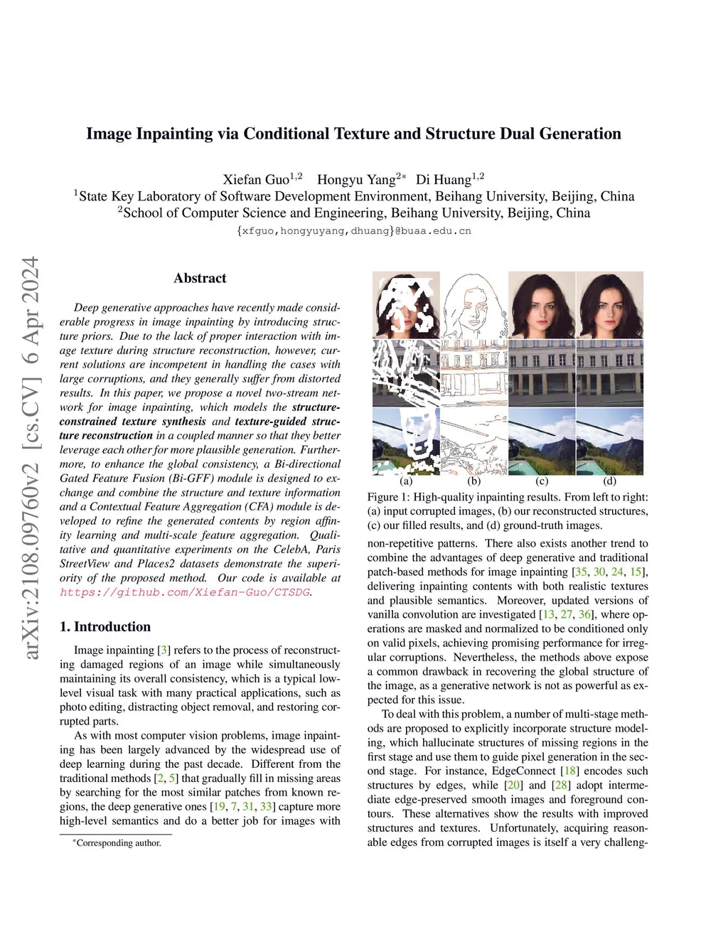 Image Inpainting via Conditional Texture and Structure Dual Generation