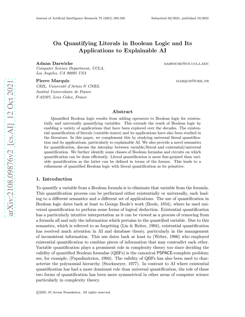 On Quantifying Literals in Boolean Logic and Its Applications to