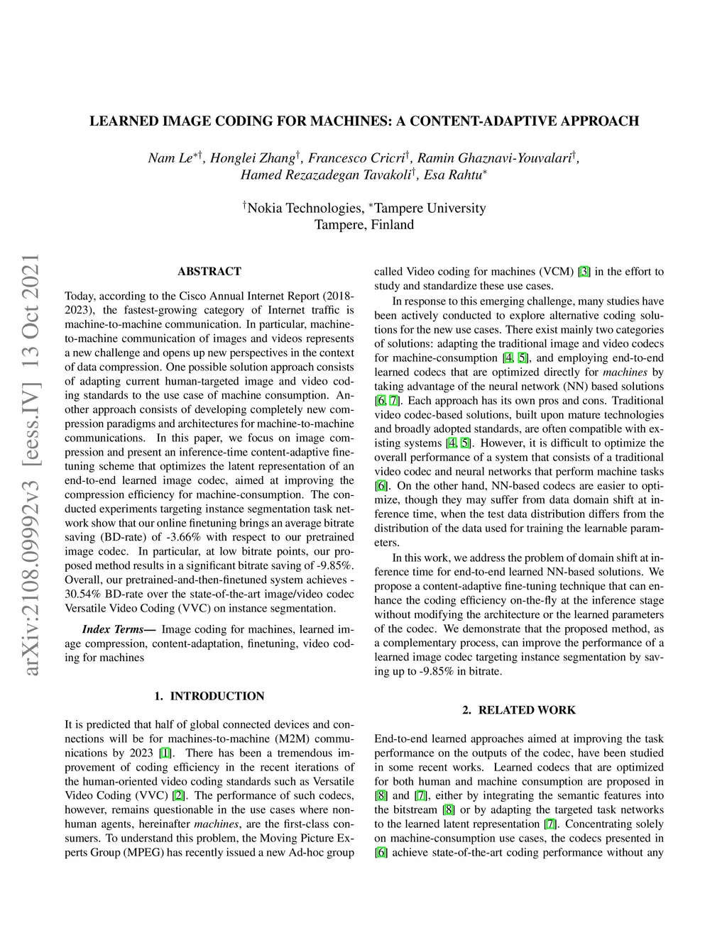 Learned Image Coding for Machines: A Content-Adaptive Approach
