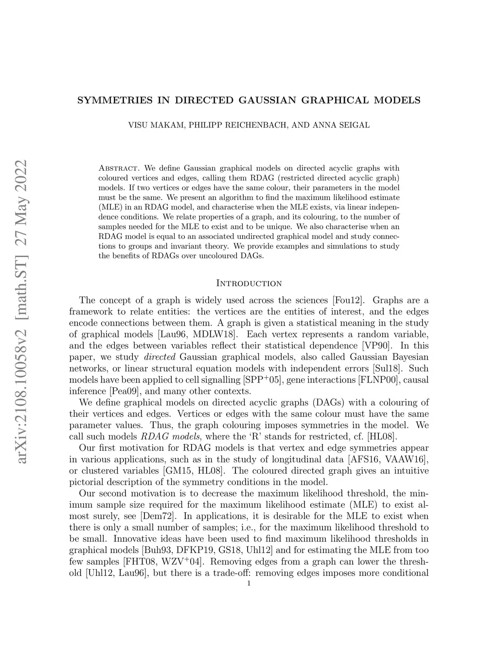We define Gaussian graphical models on directed acyclic graphs with coloured vertices and edges, calling them RDAG (restricted directed acyclic graph) models. If two vertices or edges have the same colour, their parameters in the model must be the same. We present an algorithm to find the maximum likelihood estimate (MLE) in an RDAG model, and characterise when the MLE exists, via linear independence conditions. We relate properties of a graph, and its colouring, to the number of samples needed for the MLE to exist and to be unique. We also characterise when an RDAG model is equal to an associated undirected graphical model and study connections to groups and invariant theory. We provide examples and simulations to study the benefits of RDAGs over uncoloured DAGs.