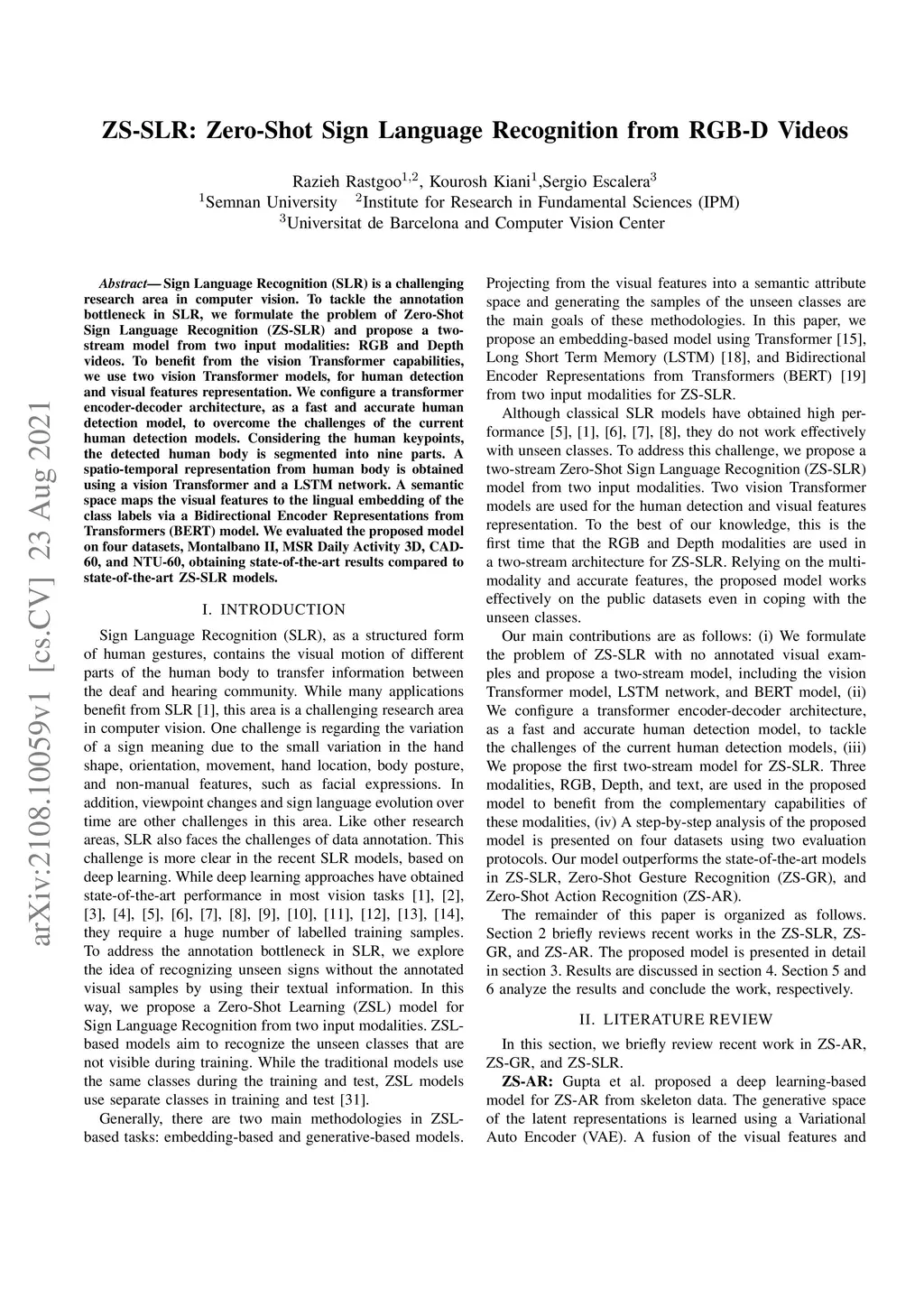 ZS-SLR: Zero-Shot Sign Language Recognition from RGB-D Videos