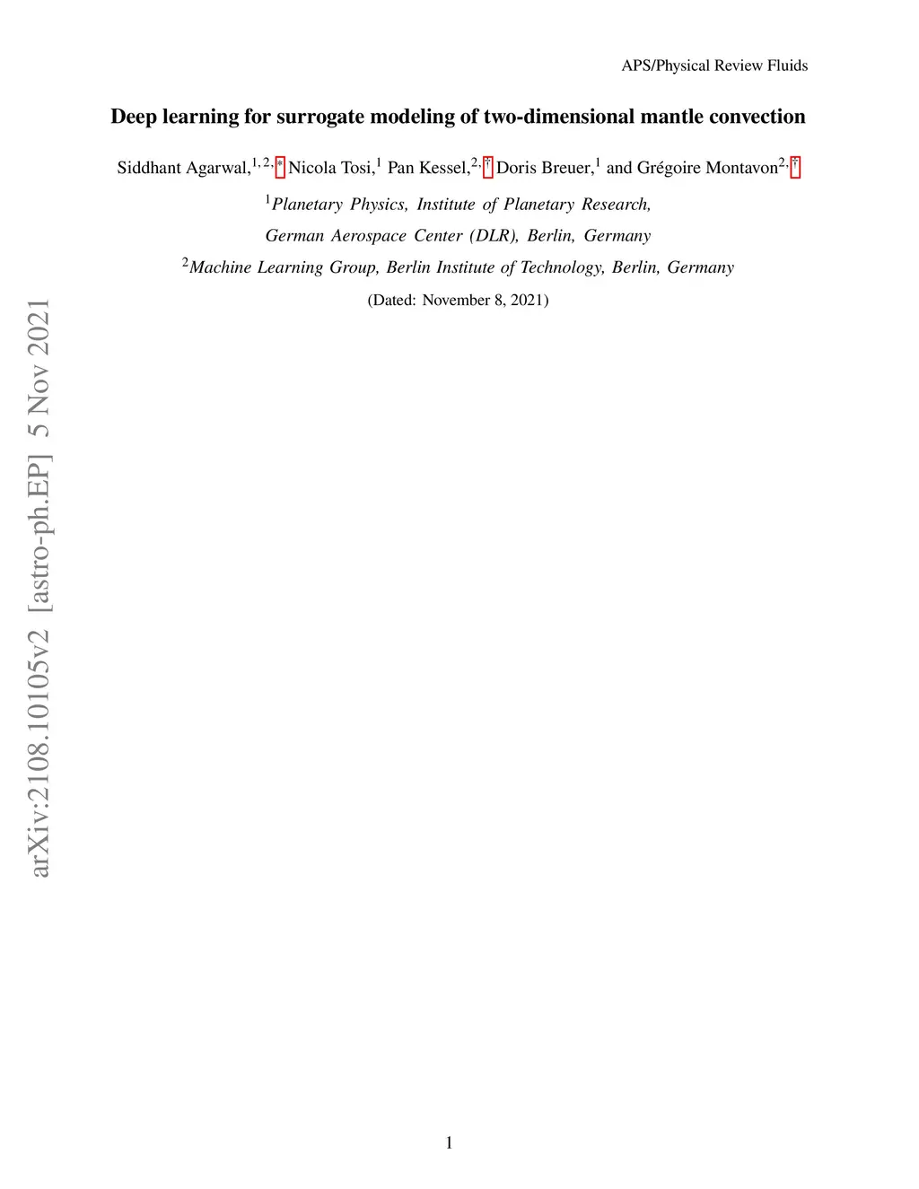 Traditionally, 1D models based on scaling laws have been used to parameterized convective heat transfer rocks in the interior of terrestrial planets like Earth, Mars, Mercury and Venus to tackle the computational bottleneck of high-fidelity forward runs in 2D or 3D. However, these are limited in the amount of physics they can model (e.g. depth dependent material properties) and predict only mean quantities such as the mean mantle temperature. We recently showed that feedforward neural networks (FNN) trained using a large number of 2D simulations can overcome this limitation and reliably predict the evolution of entire 1D laterally-averaged temperature profile in time for complex models. We now extend that approach to predict the full 2D temperature field, which contains more information in the form of convection structures such as hot plumes and cold downwellings. Using a dataset of 10,525 two-dimensional simulations of the thermal evolution of the mantle of a Mars-like planet, we show that deep learning techniques can produce reliable parameterized surrogates (i.e. surrogates that predict state variables such as temperature based only on parameters) of the underlying partial differential equations. We first use convolutional autoencoders to compress the temperature fields by a factor of 142 and then use FNN and long-short term memory networks (LSTM) to predict the compressed fields. On average, the FNN predictions are 99.30% and the LSTM predictions are 99.22% accurate with respect to unseen simulations. Proper orthogonal decomposition (POD) of the LSTM and FNN predictions shows that despite a lower mean absolute relative accuracy, LSTMs capture the flow dynamics better than FNNs. When summed, the POD coefficients from FNN predictions and from LSTM predictions amount to 96.51% and 97.66% relative to the coefficients of the original simulations, respectively.
