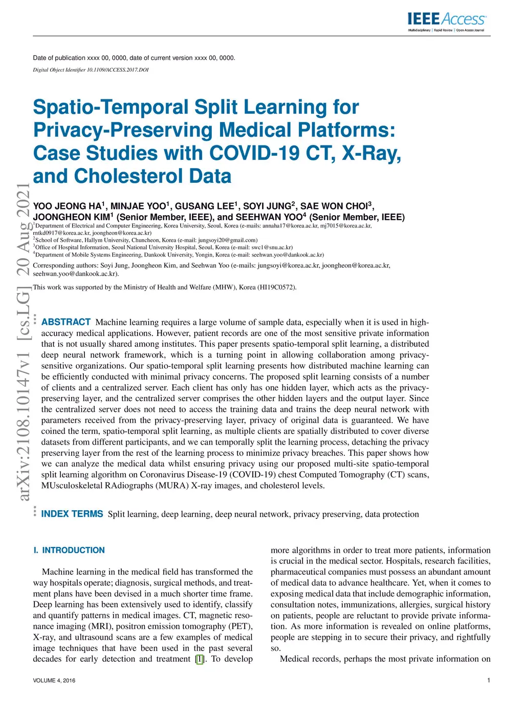Spatio-Temporal Split Learning for Privacy-Preserving Medical Platforms: