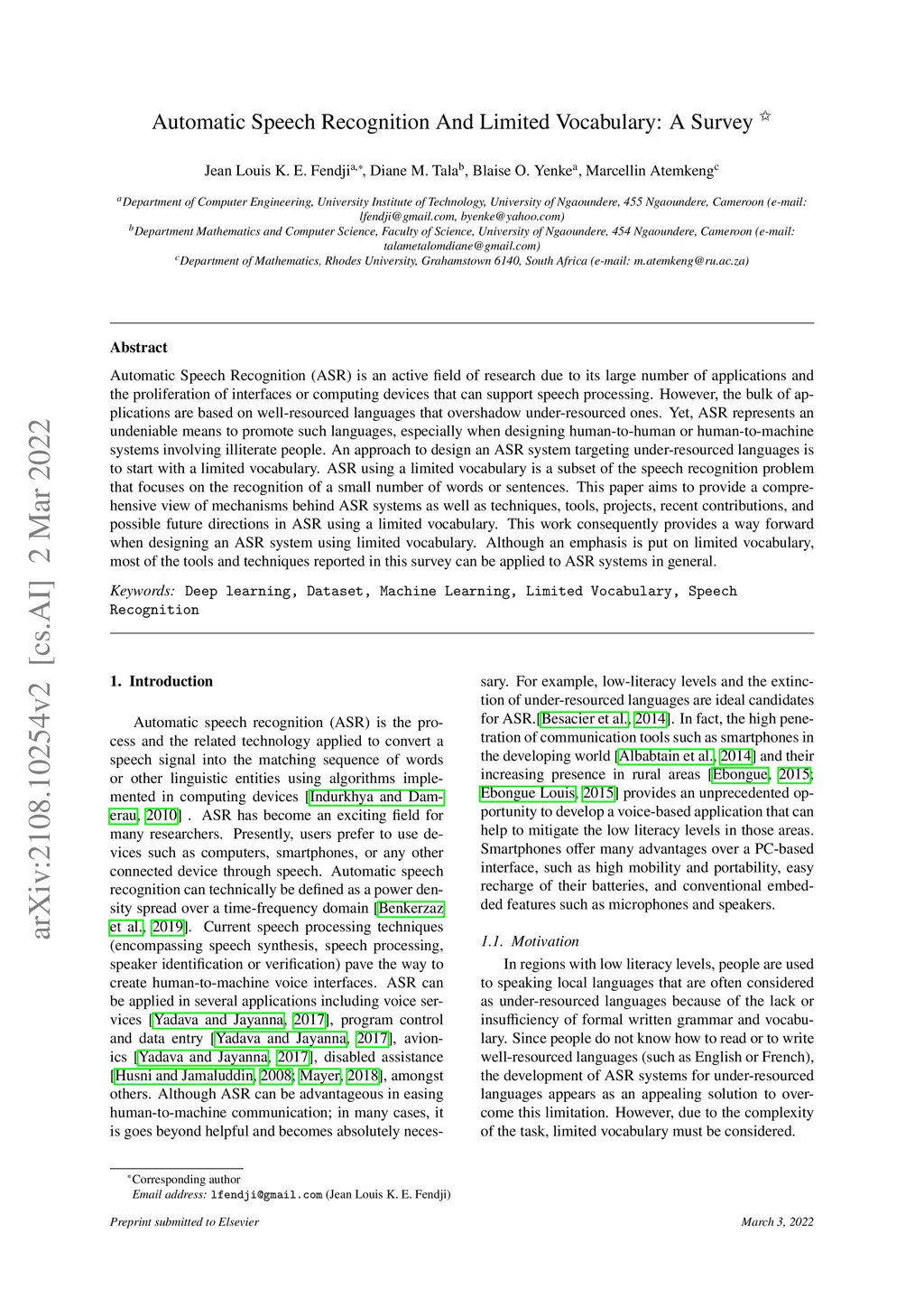 Automatic Speech Recognition And Limited Vocabulary: A Survey