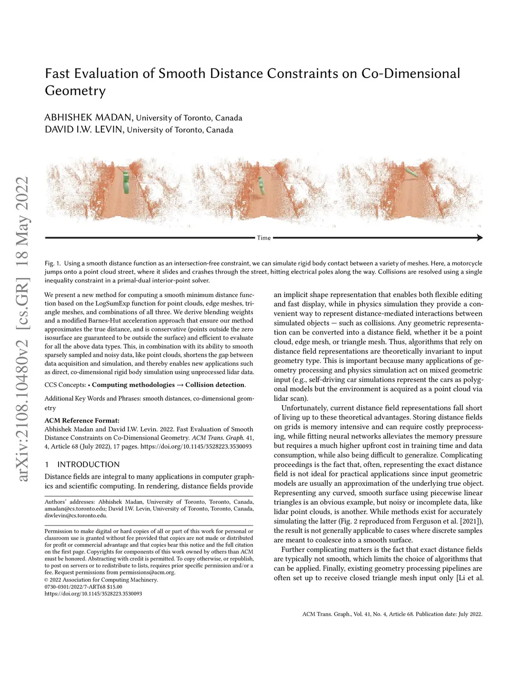 We present a new method for computing a smooth minimum distance function based on the LogSumExp function for point clouds, edge meshes, triangle meshes, and combinations of all three. We derive blending weights and a modified Barnes-Hut acceleration approach that ensure our method approximates the true distance, and is conservative (points outside the zero isosurface are guaranteed to be outside the surface) and efficient to evaluate for all the above data types. This, in combination with its ability to smooth sparsely sampled and noisy data, like point clouds, shortens the gap between data acquisition and simulation, and thereby enables new applications such as direct, co-dimensional rigid body simulation using unprocessed lidar data.
