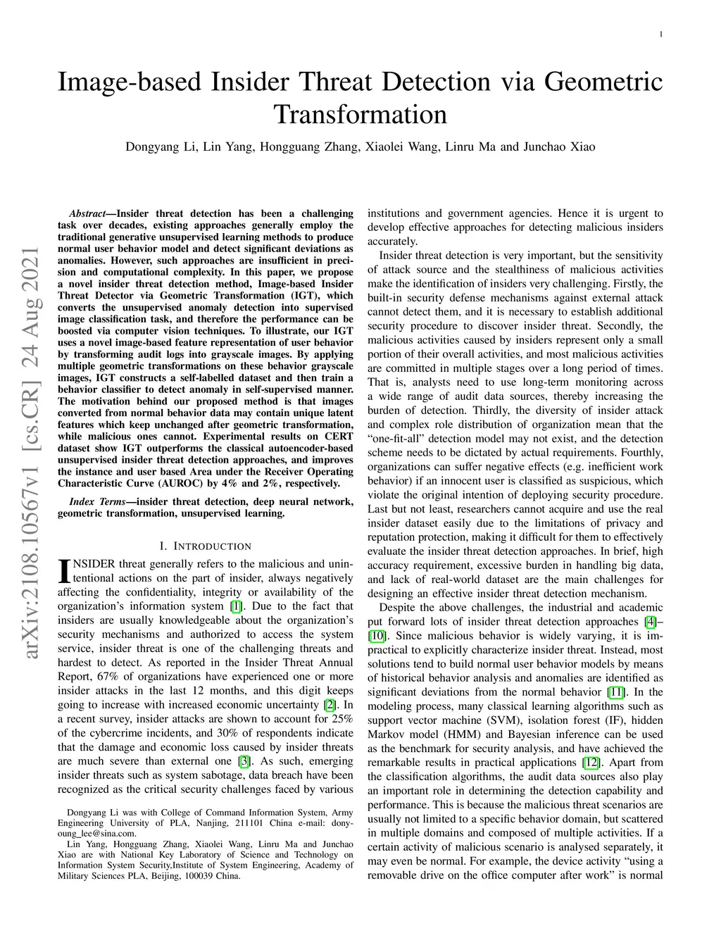Image-based Insider Threat Detection via Geometric Transformation