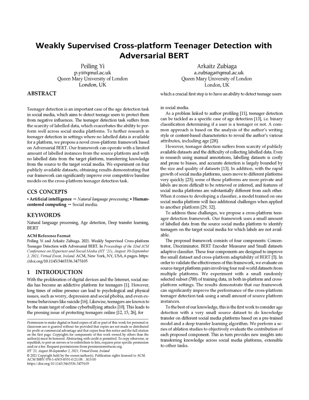 Weakly Supervised Cross-platform Teenager Detection with Adversarial