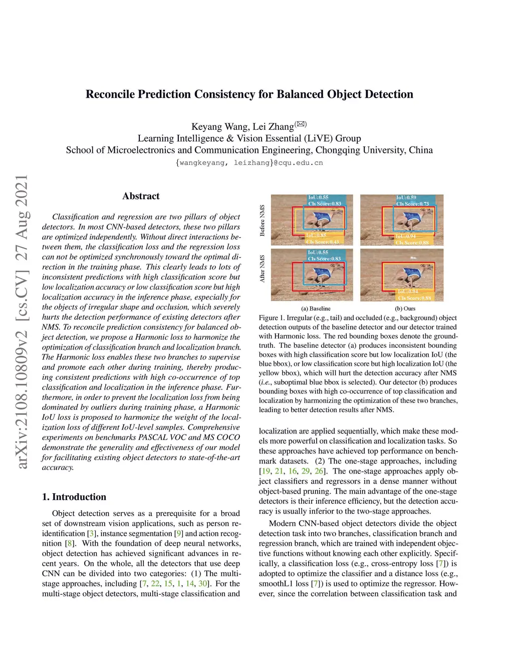 Classification and regression are two pillars of object detectors. In most CNN-based detectors, these two pillars are optimized independently. Without direct interactions between them, the classification loss and the regression loss can not be optimized synchronously toward the optimal direction in the training phase. This clearly leads to lots of inconsistent predictions with high classification score but low localization accuracy or low classification score but high localization accuracy in the inference phase, especially for the objects of irregular shape and occlusion, which severely hurts the detection performance of existing detectors after NMS. To reconcile prediction consistency for balanced object detection, we propose a Harmonic loss to harmonize the optimization of classification branch and localization branch. The Harmonic loss enables these two branches to supervise and promote each other during training, thereby producing consistent predictions with high co-occurrence of top classification and localization in the inference phase. Furthermore, in order to prevent the localization loss from being dominated by outliers during training phase, a Harmonic IoU loss is proposed to harmonize the weight of the localization loss of different IoU-level samples. Comprehensive experiments on benchmarks PASCAL VOC and MS COCO demonstrate the generality and effectiveness of our model for facilitating existing object detectors to state-of-the-art accuracy.