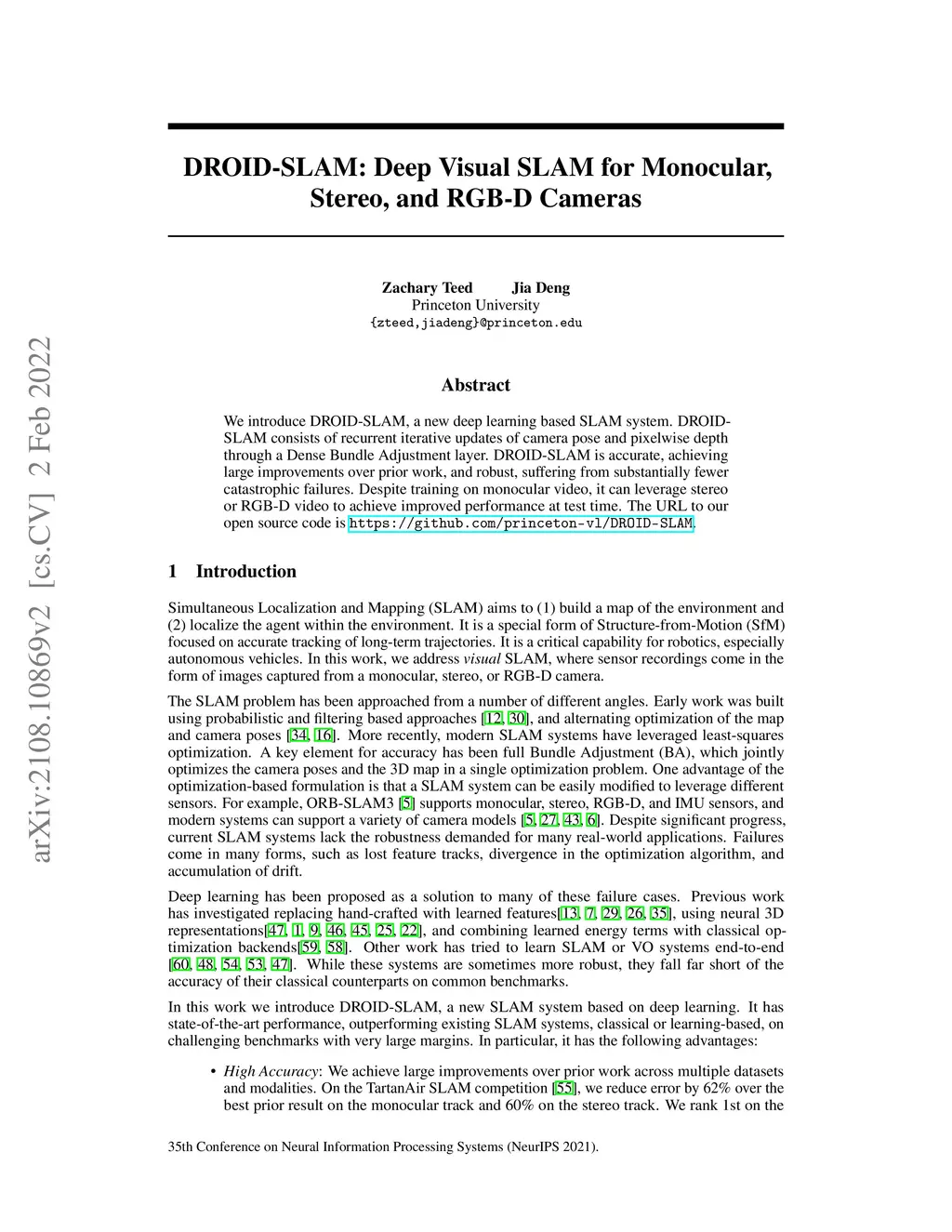 DROID-SLAM: Deep Visual SLAM for Monocular, Stereo, and RGB-D Cameras