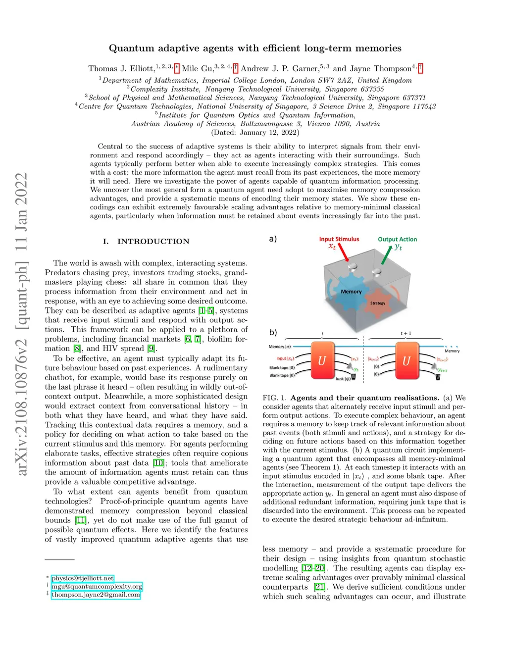 Central to the success of adaptive systems is their ability to interpret signals from their environment and respond accordingly -- they act as agents interacting with their surroundings. Such agents typically perform better when able to execute increasingly complex strategies. This comes with a cost: the more information the agent must recall from its past experiences, the more memory it will need. Here we investigate the power of agents capable of quantum information processing. We uncover the most general form a quantum agent need adopt to maximise memory compression advantages, and provide a systematic means of encoding their memory states. We show these encodings can exhibit extremely favourable scaling advantages relative to memory-minimal classical agents, particularly when information must be retained about events increasingly far into the past.