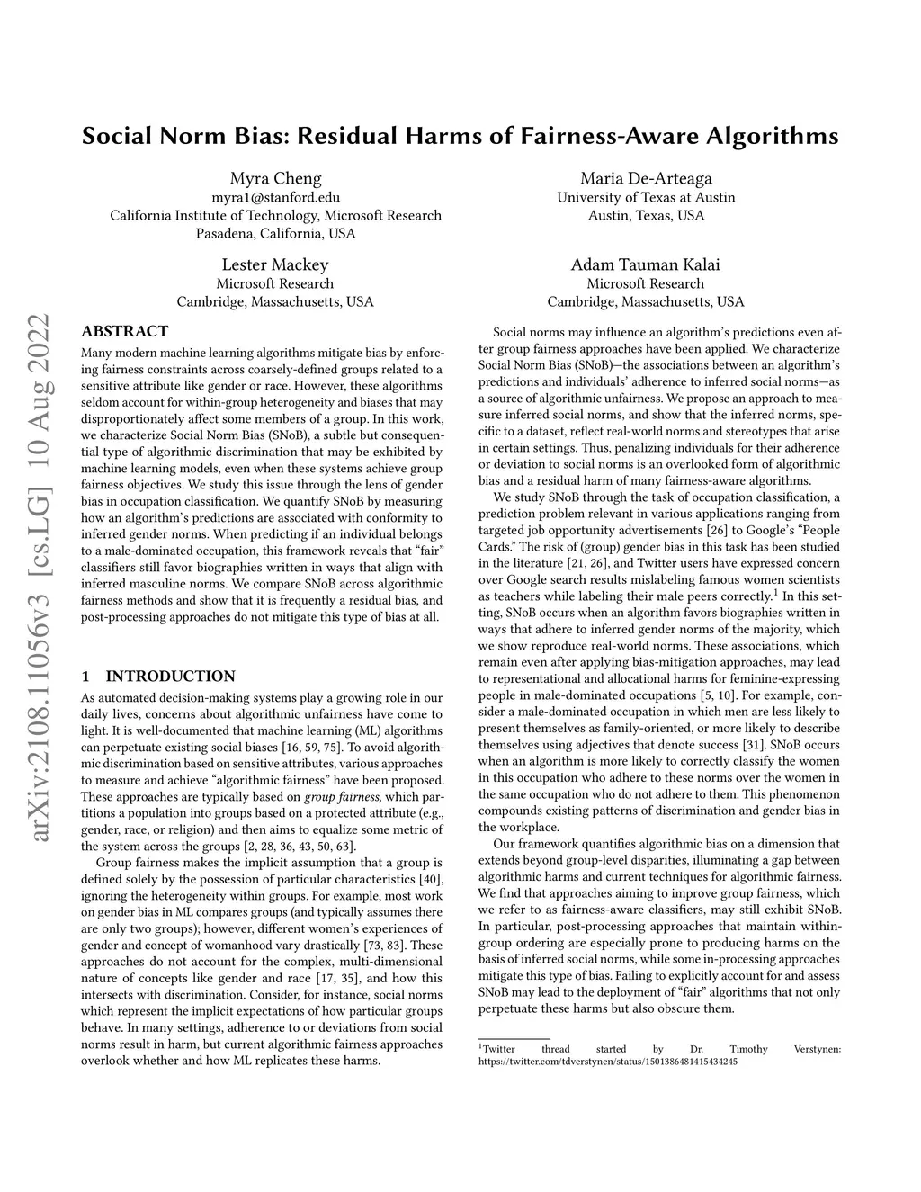 Social Norm Bias: Residual Harms of Fairness-Aware Algorithms