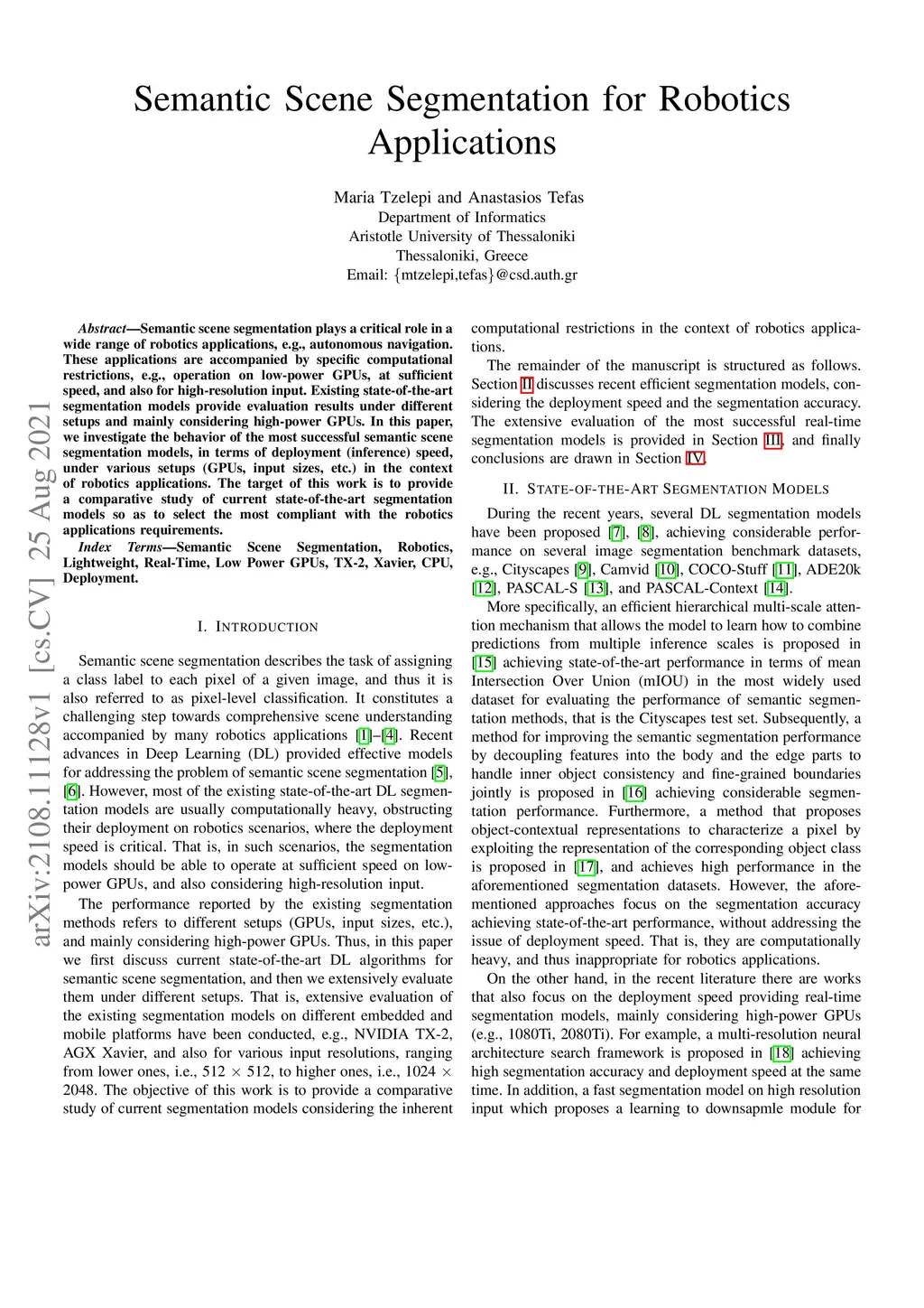 Semantic Scene Segmentation for Robotics Applications