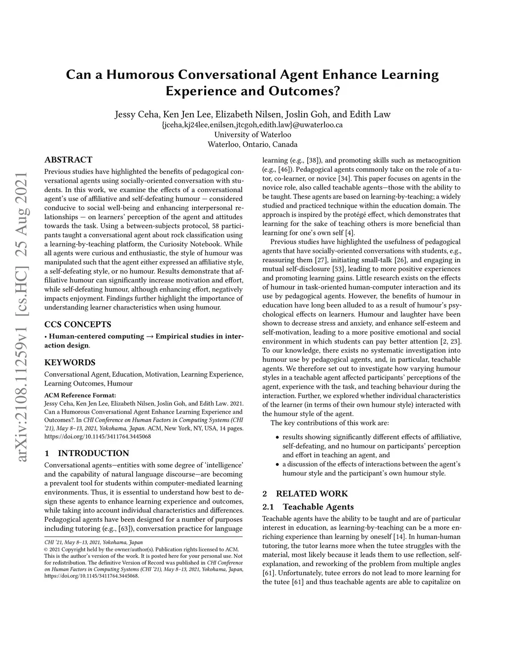 Can a Humorous Conversational Agent Enhance Learning Experience and