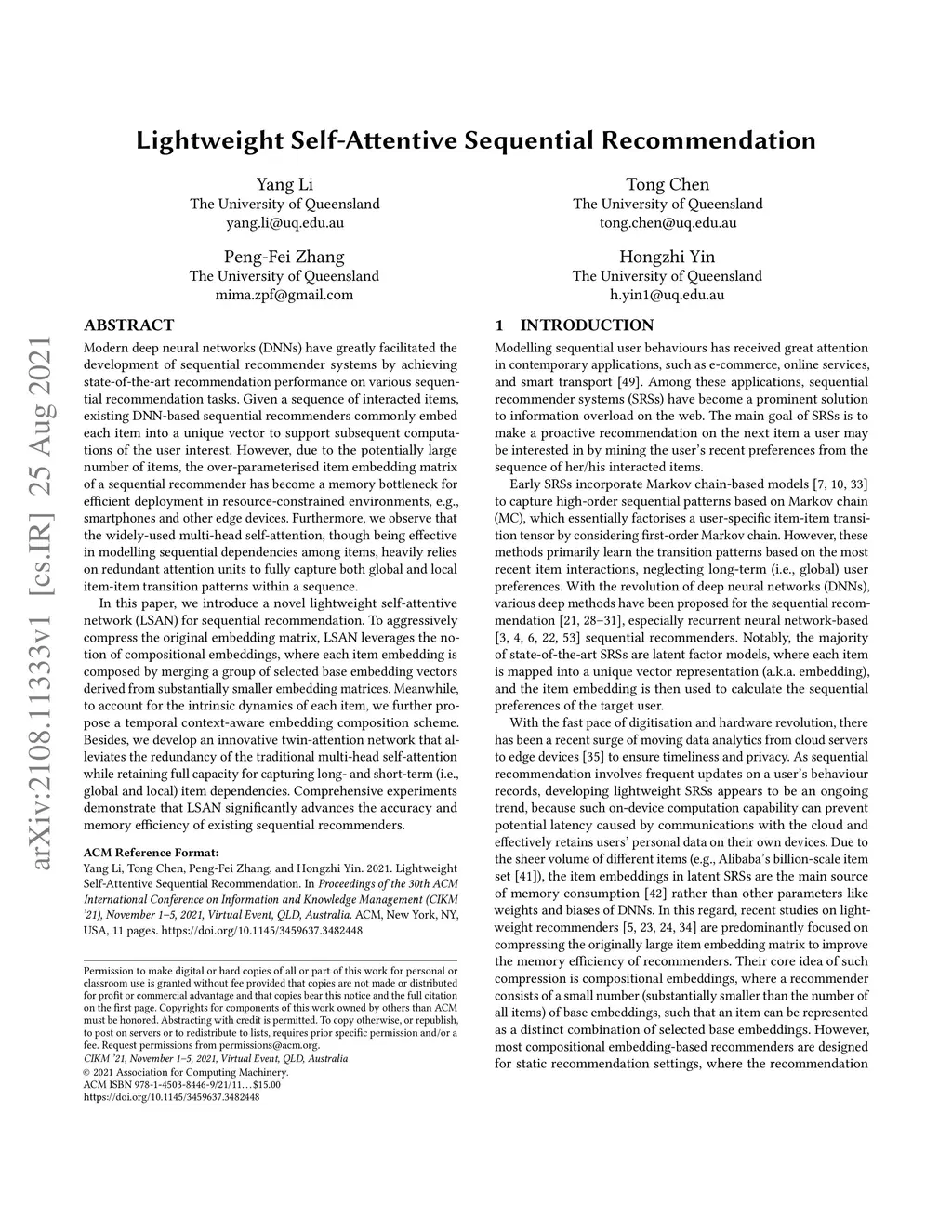 Lightweight Self-Attentive Sequential Recommendation