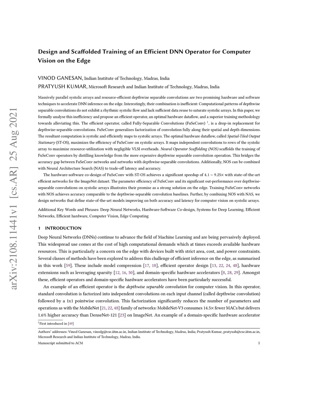 Massively parallel systolic arrays and resource-efficient depthwise separable convolutions are two promising techniques to accelerate DNN inference on the edge. Interestingly, their combination is inefficient: Computational patterns of depthwise separable convolutions do not exhibit a rhythmic systolic flow and lack sufficient data reuse to saturate systolic arrays. We formally analyse this inefficiency and propose an efficient operator, an optimal hardware dataflow, and a superior training methodology towards alleviating this. The efficient operator, called FuSeConv, is a drop-in replacement for depthwise separable convolutions. FuSeConv factorizes convolution fully along their spatial and depth dimensions. The resultant computation efficiently maps to systolic arrays. The optimal dataflow, called Spatial-Tiled Output Stationary (ST-OS), maximizes the efficiency of FuSeConv on systolic arrays. It maps independent convolutions to rows of the array to maximize resource utilization with negligible VLSI overheads. Neural Operator Scaffolding (NOS) scaffolds the training of FuSeConv by distilling knowledge from the expensive depthwise separable convolutions. This bridges the accuracy gap between FuSeConv networks and baselines. Additionally, NOS can be combined with Neural Architecture Search (NAS) to trade-off latency and accuracy. The HW/SW co-design of FuSeConv with ST-OS achieves a significant speedup of 4.1-9.25X with state-of-the-art efficient networks for ImageNet. The parameter efficiency of FuSeConv and its significant out-performance over depthwise separable convolutions on systolic arrays illustrates their promise as a strong solution on the edge. Training FuSeConv networks with NOS achieves accuracy comparable to the baselines. Further, by combining NOS with NAS, we design networks that define state-of-the-art models improving on both accuracy and latency on systolic arrays.