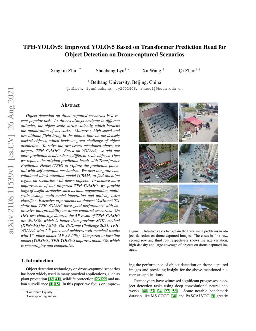 TPH-YOLOv5: Improved YOLOv5 Based on Transformer Prediction Head for