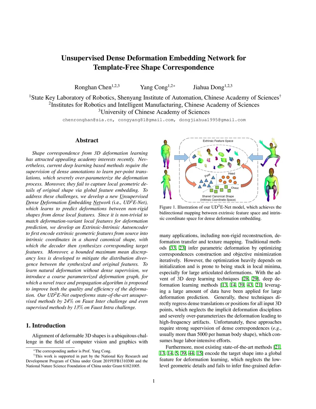 Unsupervised Dense Deformation Embedding Network for Template-Free Shape