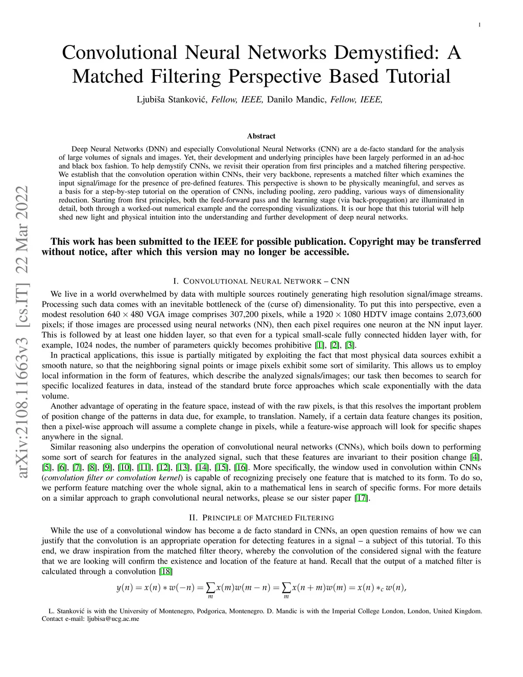 Convolutional Neural Networks Demystified: A Matched Filtering Perspective Based Tutorial