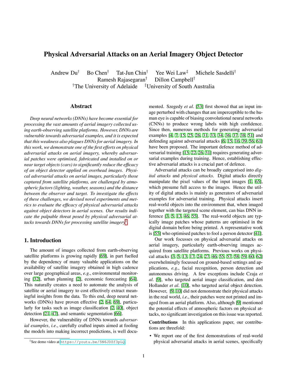 Physical Adversarial Attacks on an Aerial Imagery Object Detector