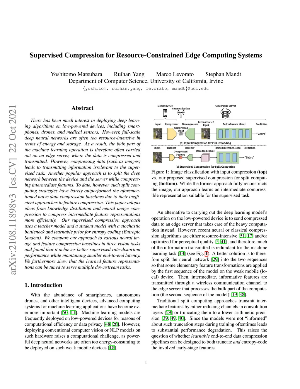 Supervised Compression for Resource-Constrained Edge Computing Systems