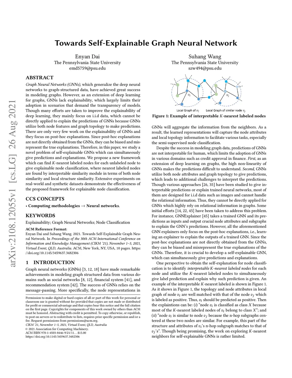 Graph Neural Networks (GNNs), which generalize the deep neural networks to graph-structured data, have achieved great success in modeling graphs. However, as an extension of deep learning for graphs, GNNs lack explainability, which largely limits their adoption in scenarios that demand the transparency of models. Though many efforts are taken to improve the explainability of deep learning, they mainly focus on i.i.d data, which cannot be directly applied to explain the predictions of GNNs because GNNs utilize both node features and graph topology to make predictions. There are only very few work on the explainability of GNNs and they focus on post-hoc explanations. Since post-hoc explanations are not directly obtained from the GNNs, they can be biased and misrepresent the true explanations. Therefore, in this paper, we study a novel problem of self-explainable GNNs which can simultaneously give predictions and explanations. We propose a new framework which can find -nearest labeled nodes for each unlabeled node to give explainable node classification, where nearest labeled nodes are found by interpretable similarity module in terms of both node similarity and local structure similarity. Extensive experiments on real-world and synthetic datasets demonstrate the effectiveness of the proposed framework for explainable node classification.