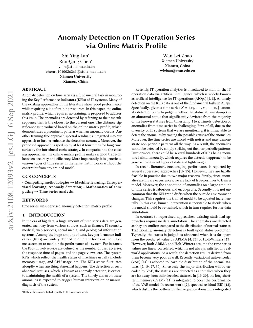 Anomaly Detection on IT Operation Series via Online Matrix Profile