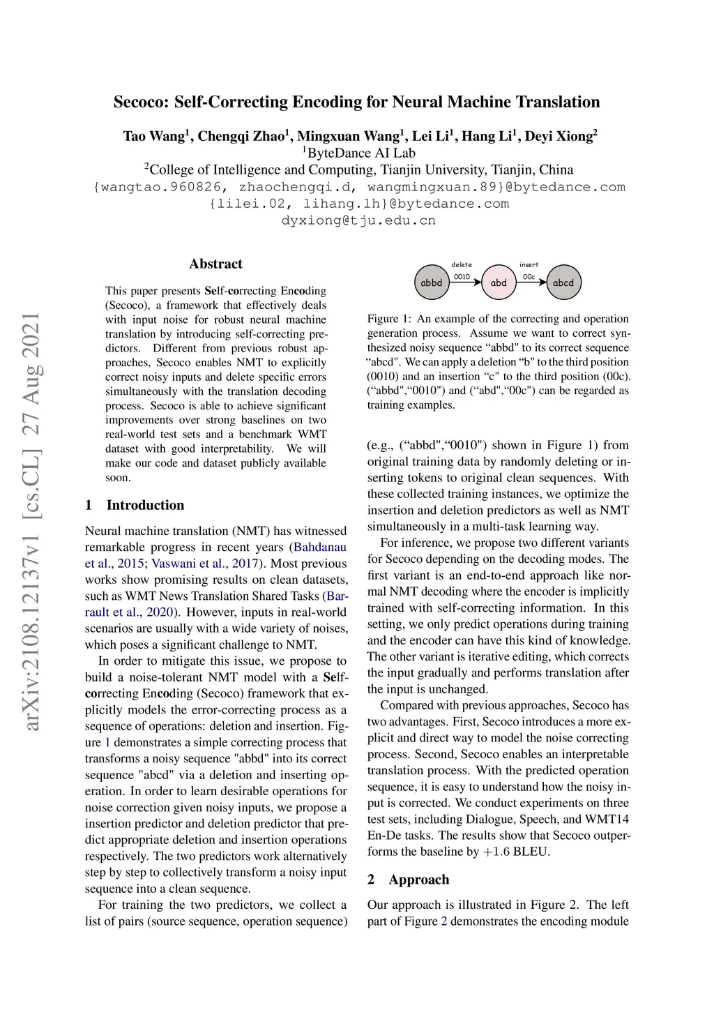 Secoco: Self-Correcting Encoding for Neural Machine Translation