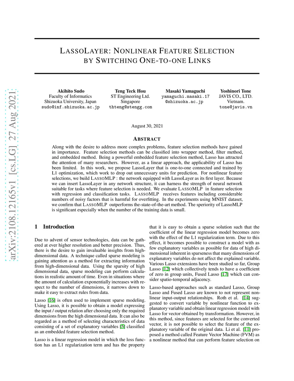 LassoLayer: Nonlinear Feature Selection by Switching One-to-one Links