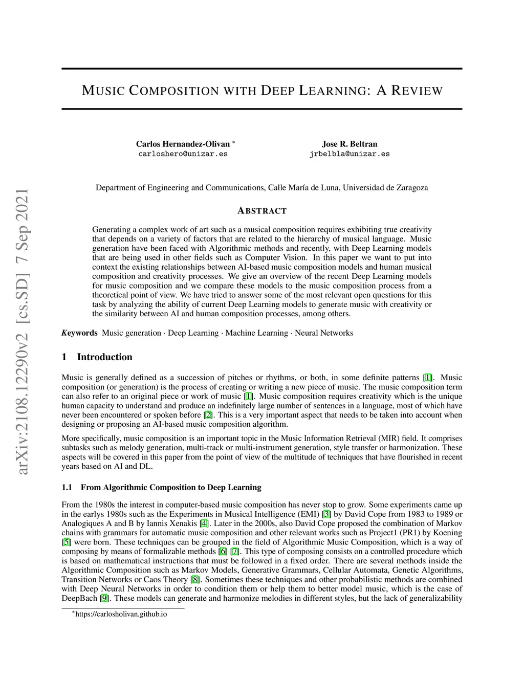 Music Composition with Deep Learning: A Review