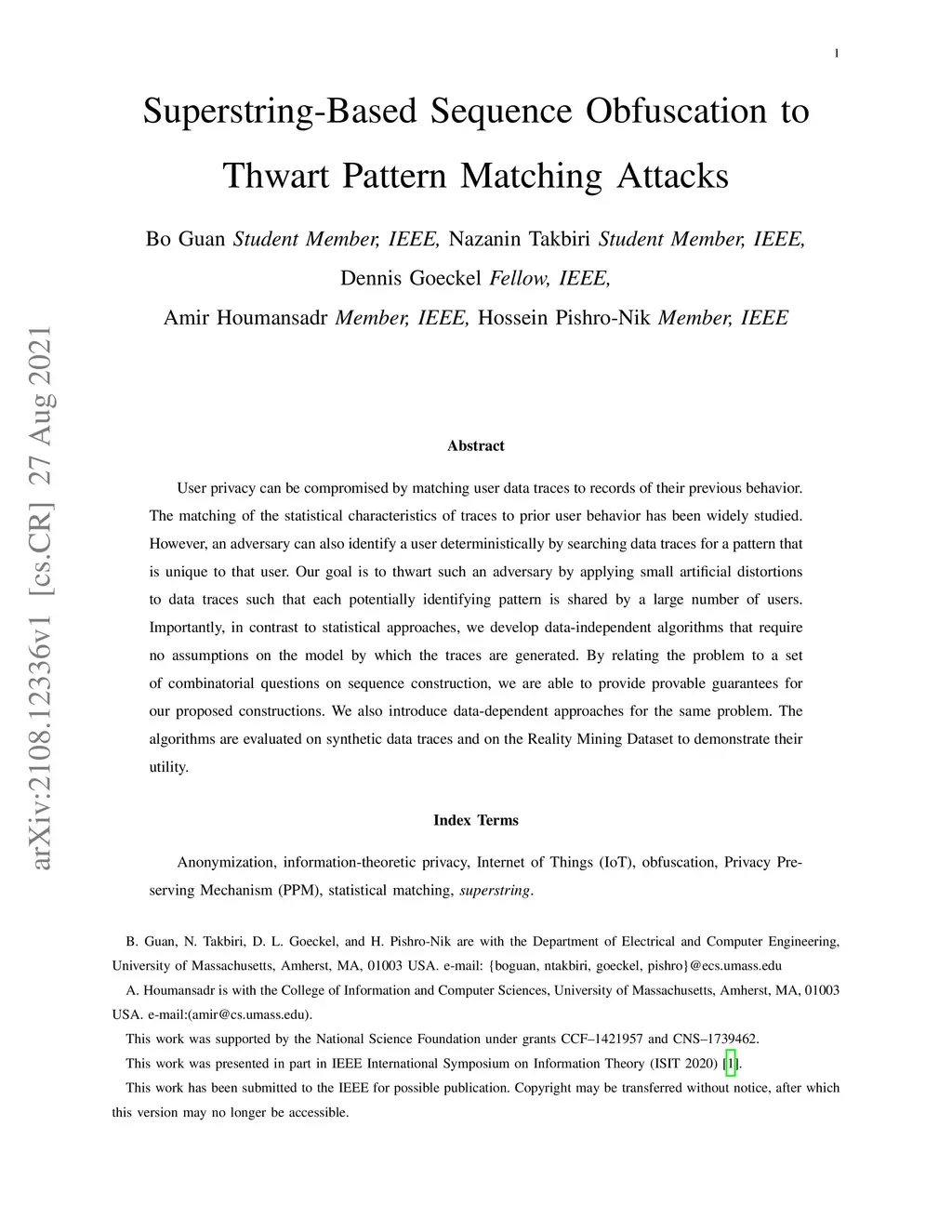 Superstring-Based Sequence Obfuscation to Thwart Pattern Matching