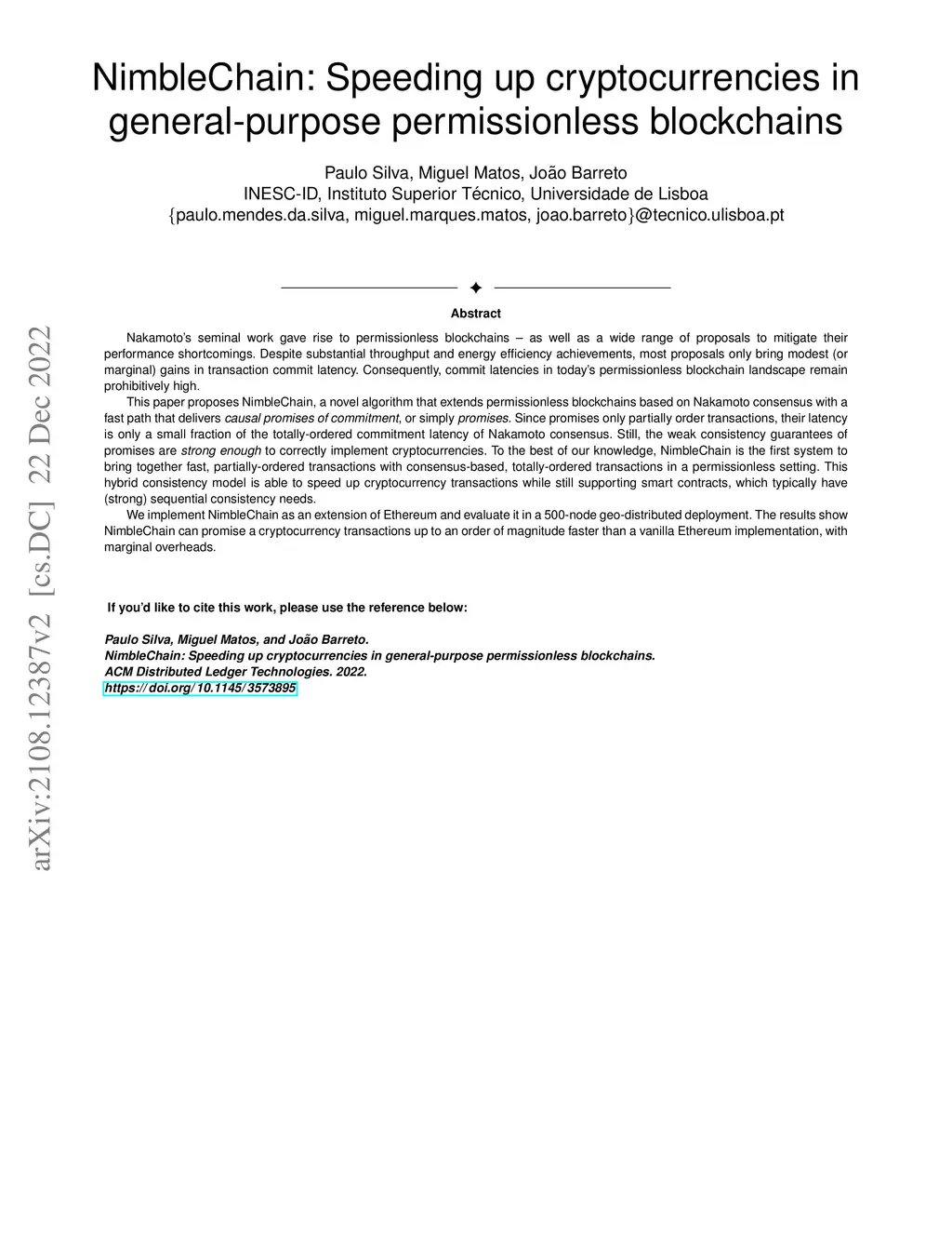 NimbleChain: Speeding up cryptocurrencies in general-purpose