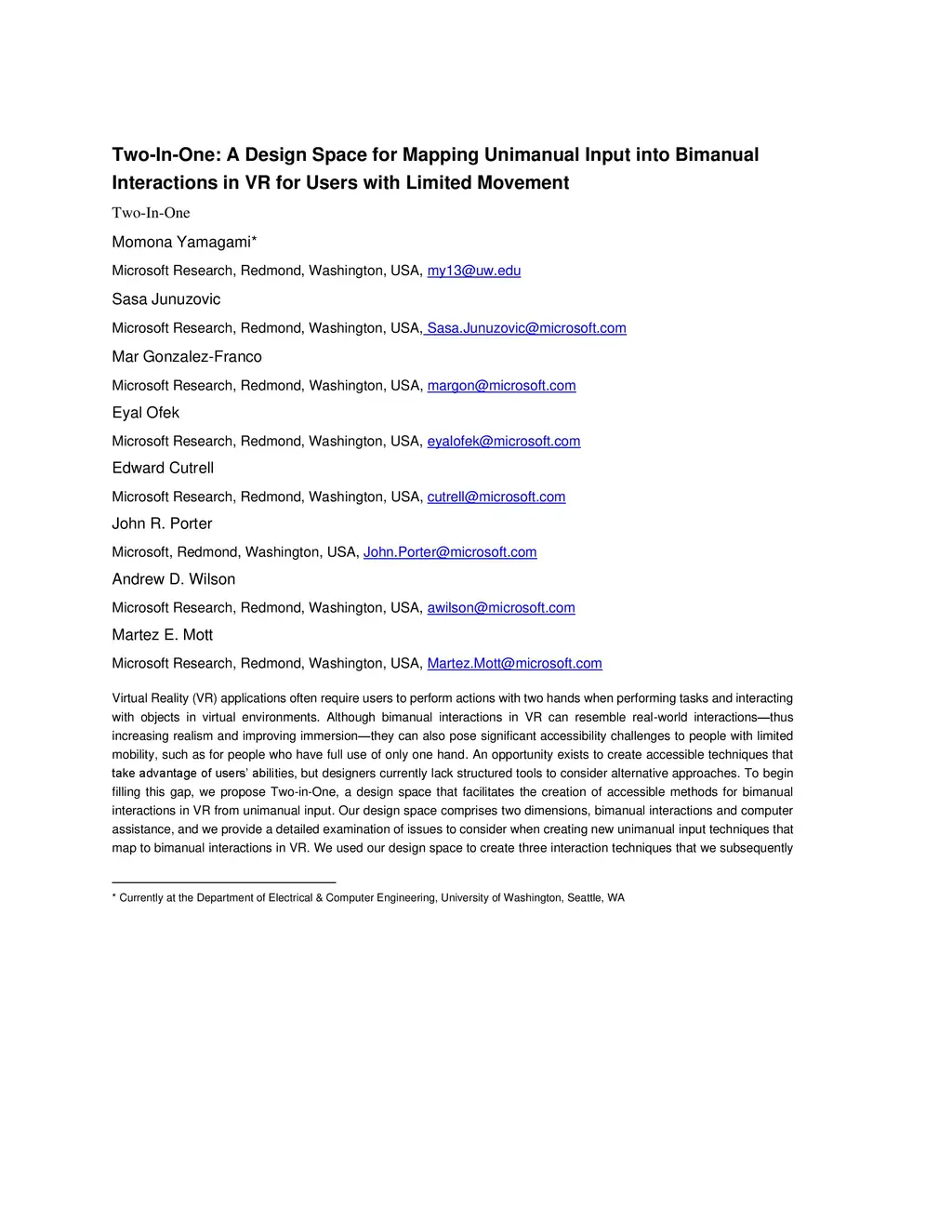 Two-In-One: A Design Space for Mapping Unimanual Input into Bimanual