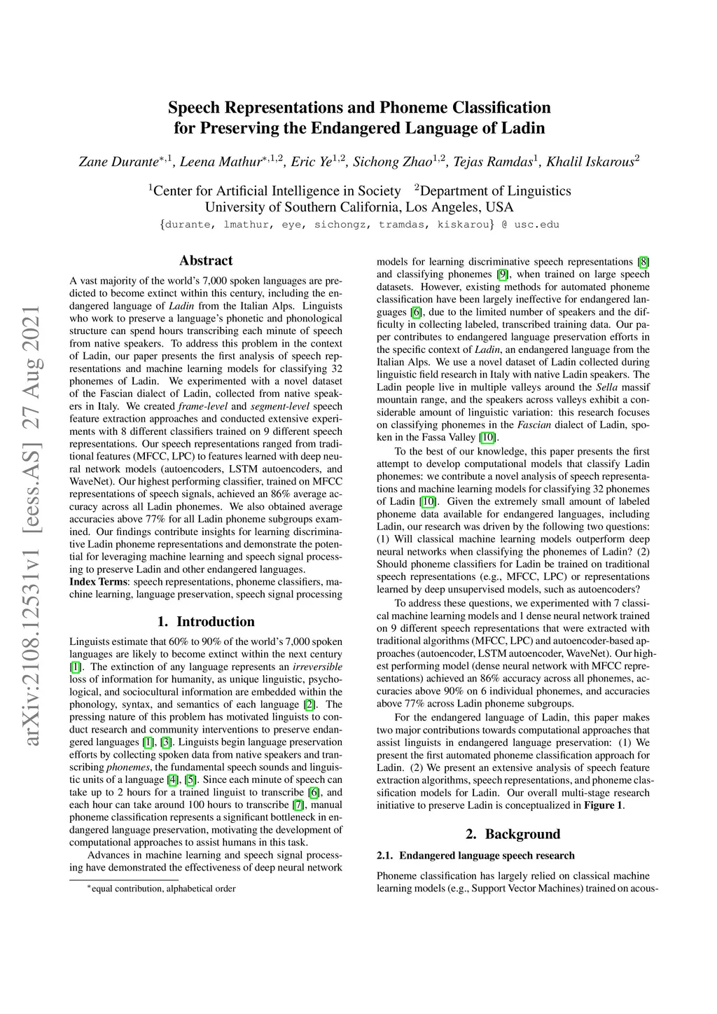 Speech Representations and Phoneme Classification for Preserving the