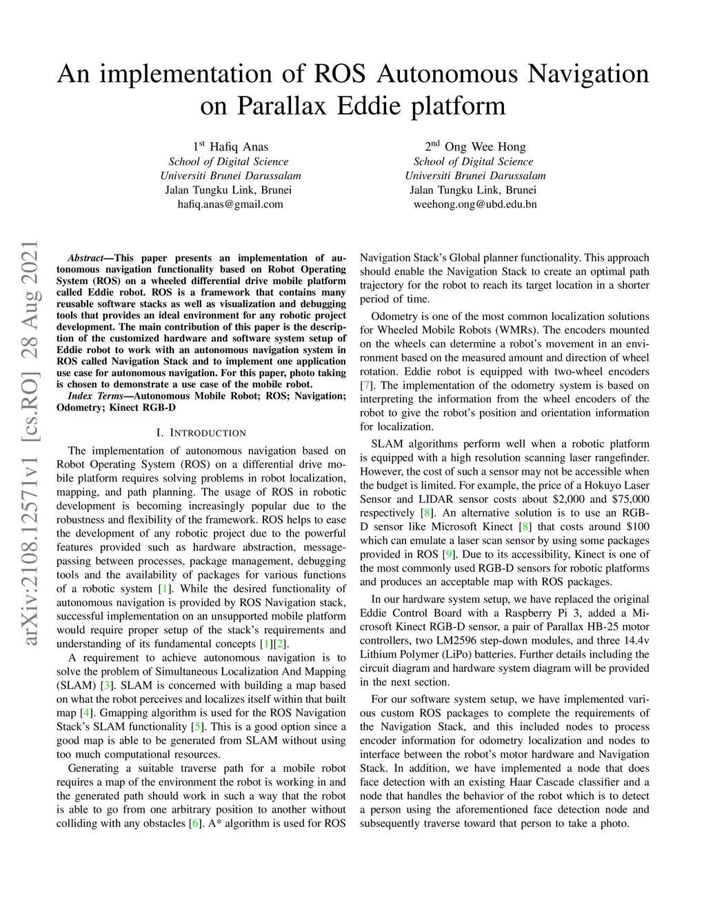 An implementation of ROS Autonomous Navigation on Parallax Eddie