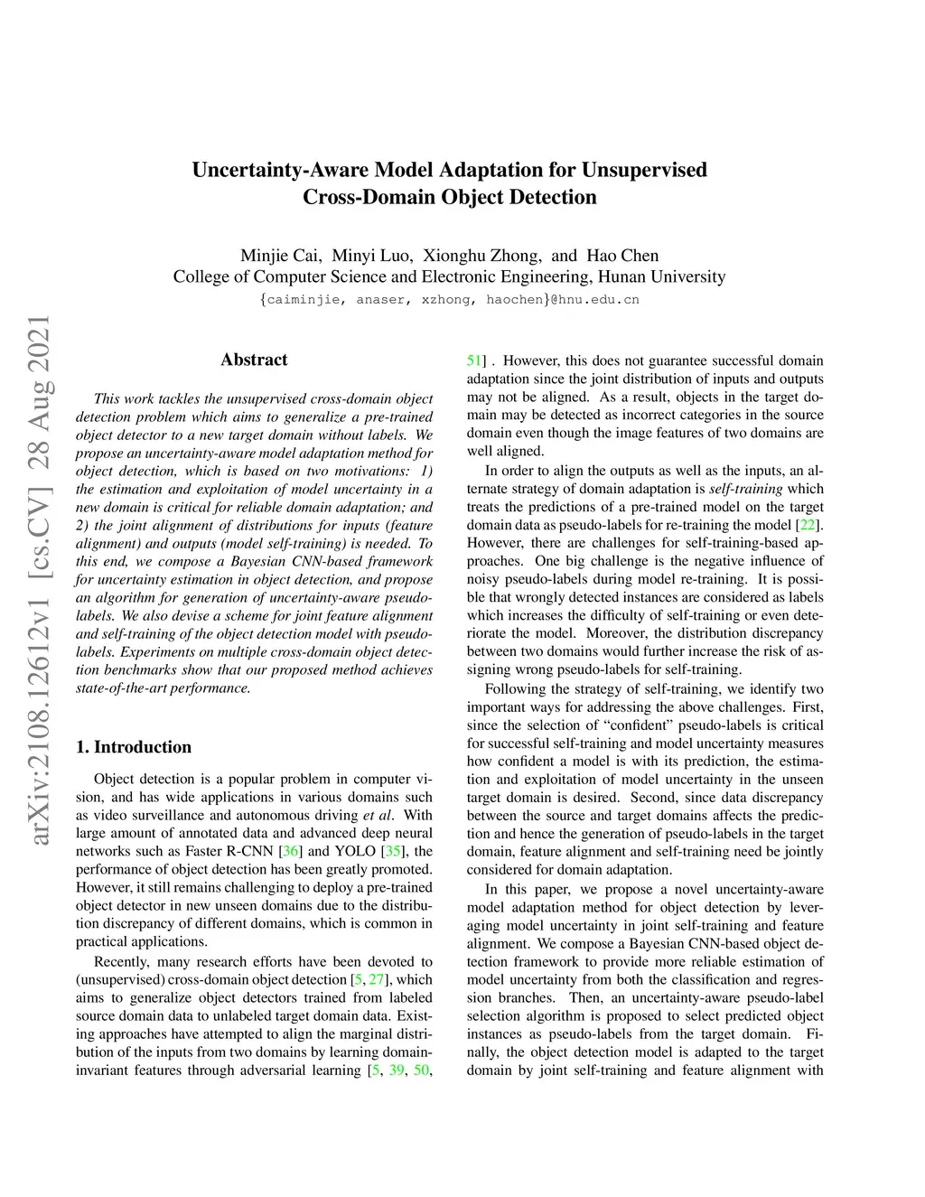 Uncertainty-Aware Model Adaptation for Unsupervised Cross-Domain Object