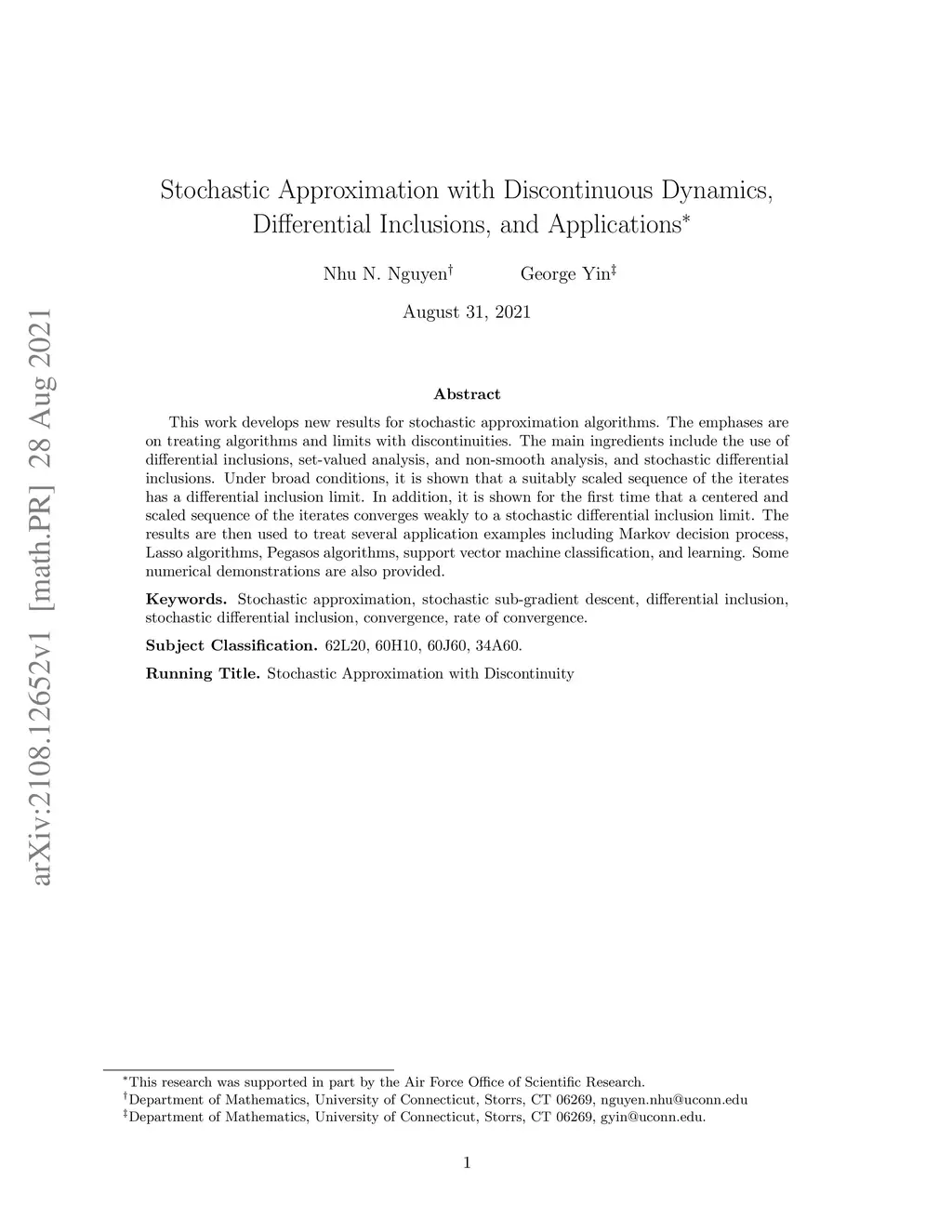 Stochastic Approximation with Discontinuous Dynamics, Differential