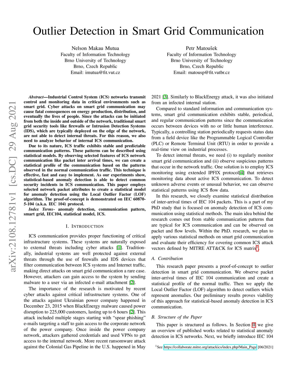 Outlier Detection in Smart Grid Communication