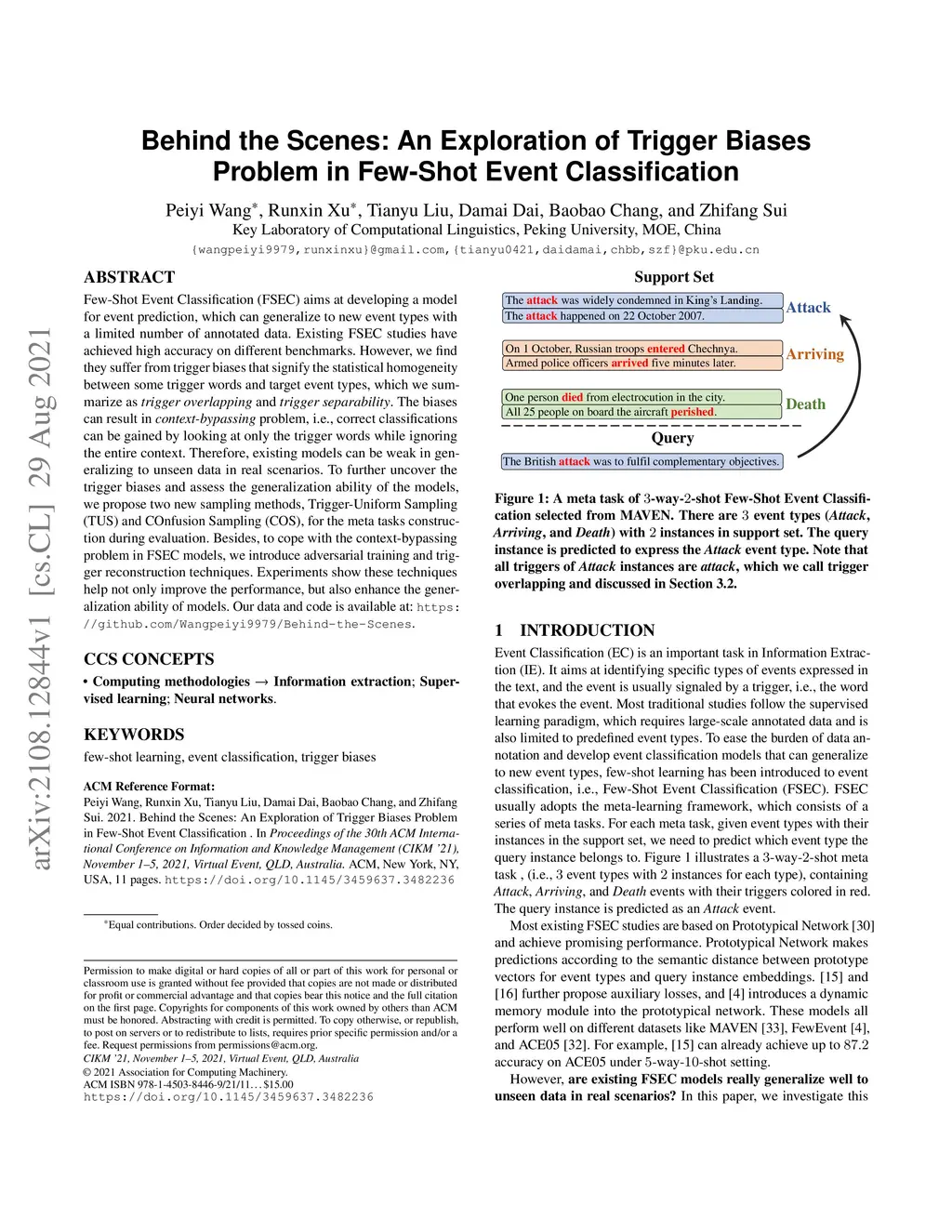 Behind the Scenes: An Exploration of Trigger Biases Problem in Few-Shot