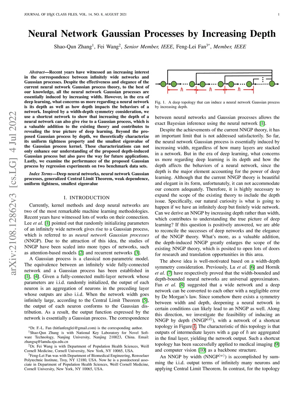 Recent years have witnessed an increasing interest in the correspondence between infinitely wide networks and Gaussian processes. Despite the effectiveness and elegance of the current neural network Gaussian process theory, to the best of our knowledge, all the neural network Gaussian processes are essentially induced by increasing width. However, in the era of deep learning, what concerns us more regarding a neural network is its depth as well as how depth impacts the behaviors of a network. Inspired by a width-depth symmetry consideration, we use a shortcut network to show that increasing the depth of a neural network can also give rise to a Gaussian process, which is a valuable addition to the existing theory and contributes to revealing the true picture of deep learning. Beyond the proposed Gaussian process by depth, we theoretically characterize its uniform tightness property and the smallest eigenvalue of the Gaussian process kernel. These characterizations can not only enhance our understanding of the proposed depth-induced Gaussian process but also pave the way for future applications. Lastly, we examine the performance of the proposed Gaussian process by regression experiments on two benchmark data sets.