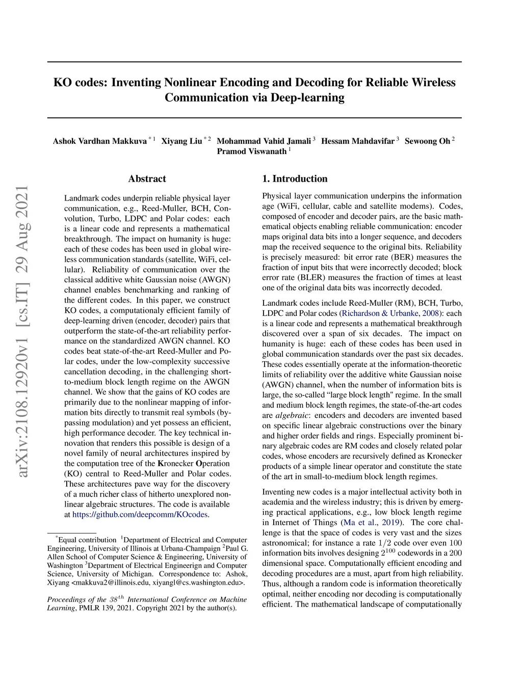 KO codes: Inventing Nonlinear Encoding and Decoding for Reliable