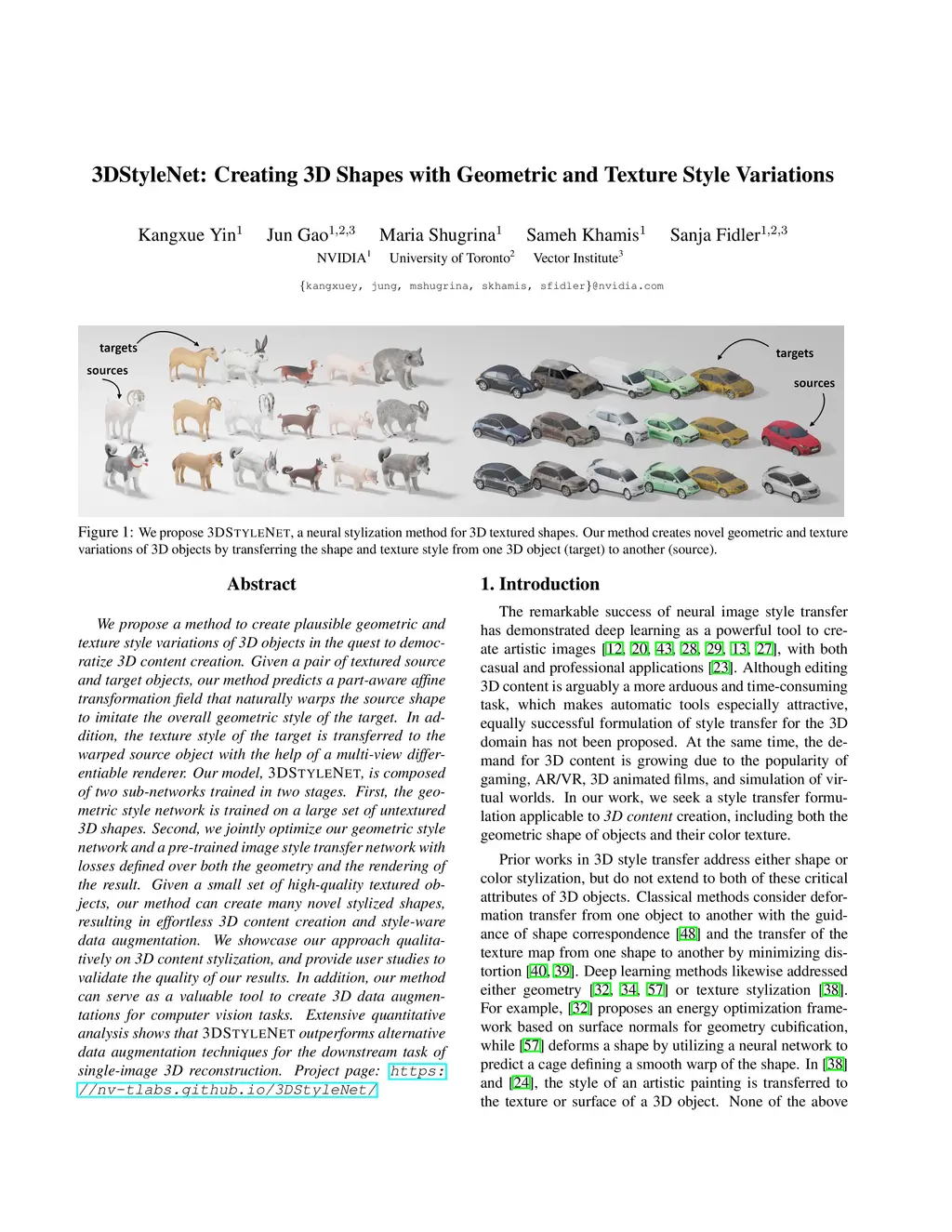 3DStyleNet: Creating 3D Shapes with Geometric and Texture Style