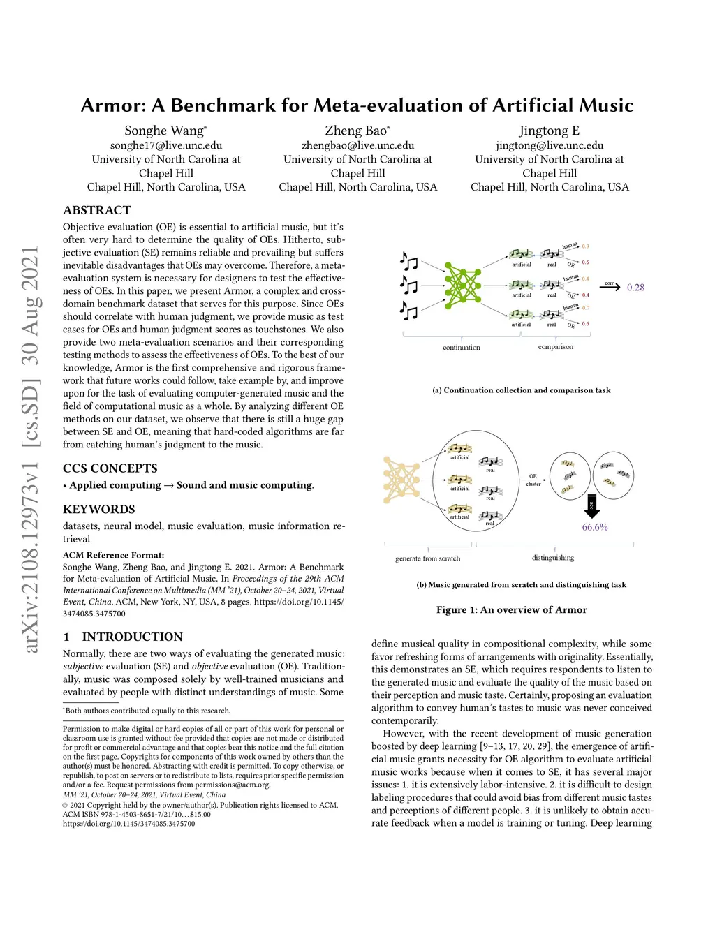 Armor: A Benchmark for Meta-evaluation of Artificial Music