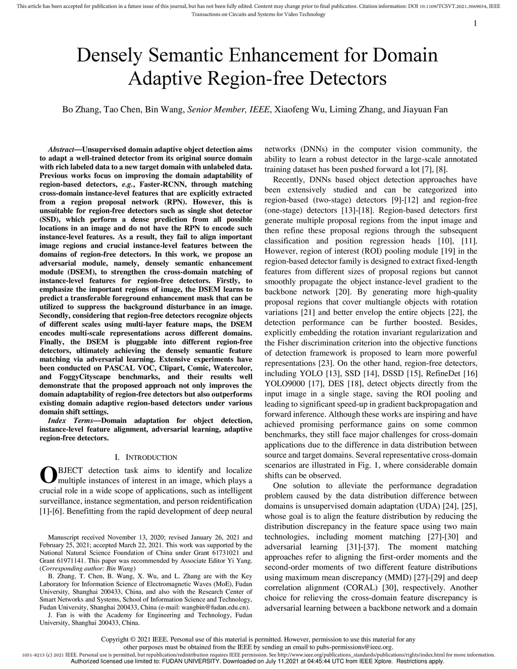 Densely Semantic Enhancement for Domain Adaptive Region-free Detectors