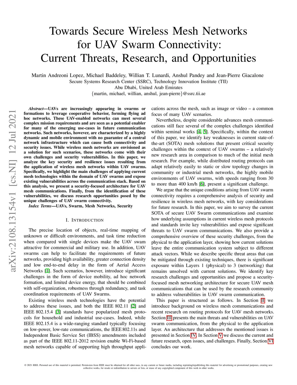Towards Secure Wireless Mesh Networks for UAV Swarm Connectivity: