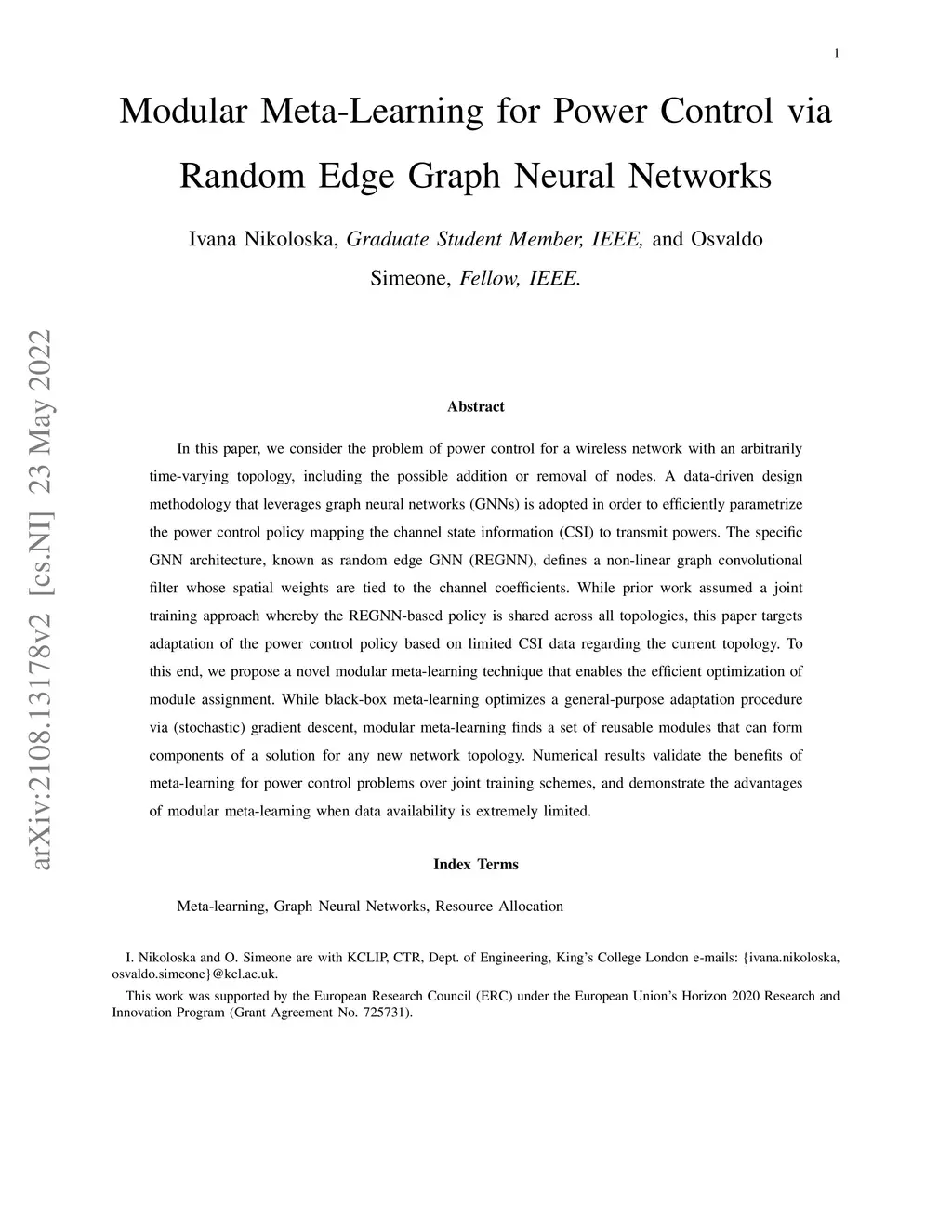 Modular Meta-Learning for Power Control via Random Edge Graph Neural