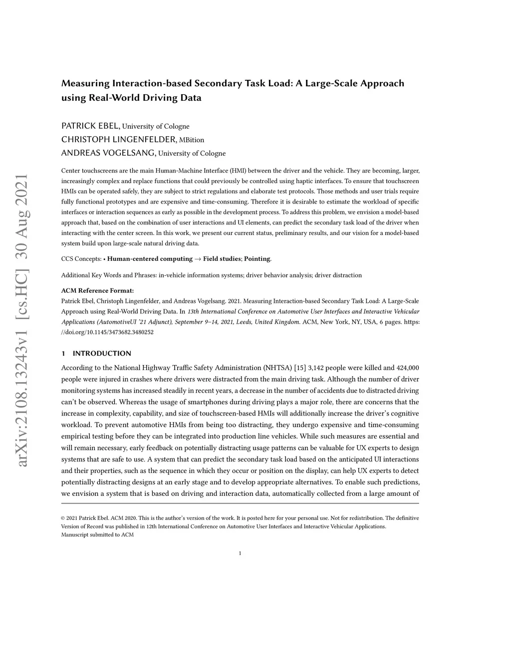 Measuring Interaction-based Secondary Task Load: A Large-Scale Approach