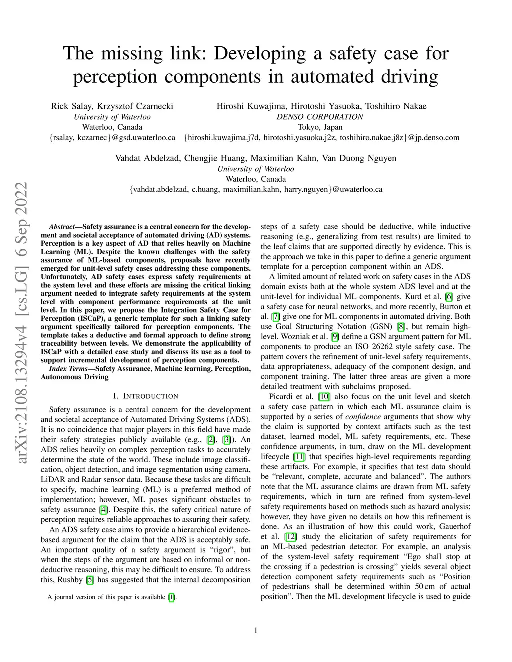 The missing link: Developing a safety case for perception components in