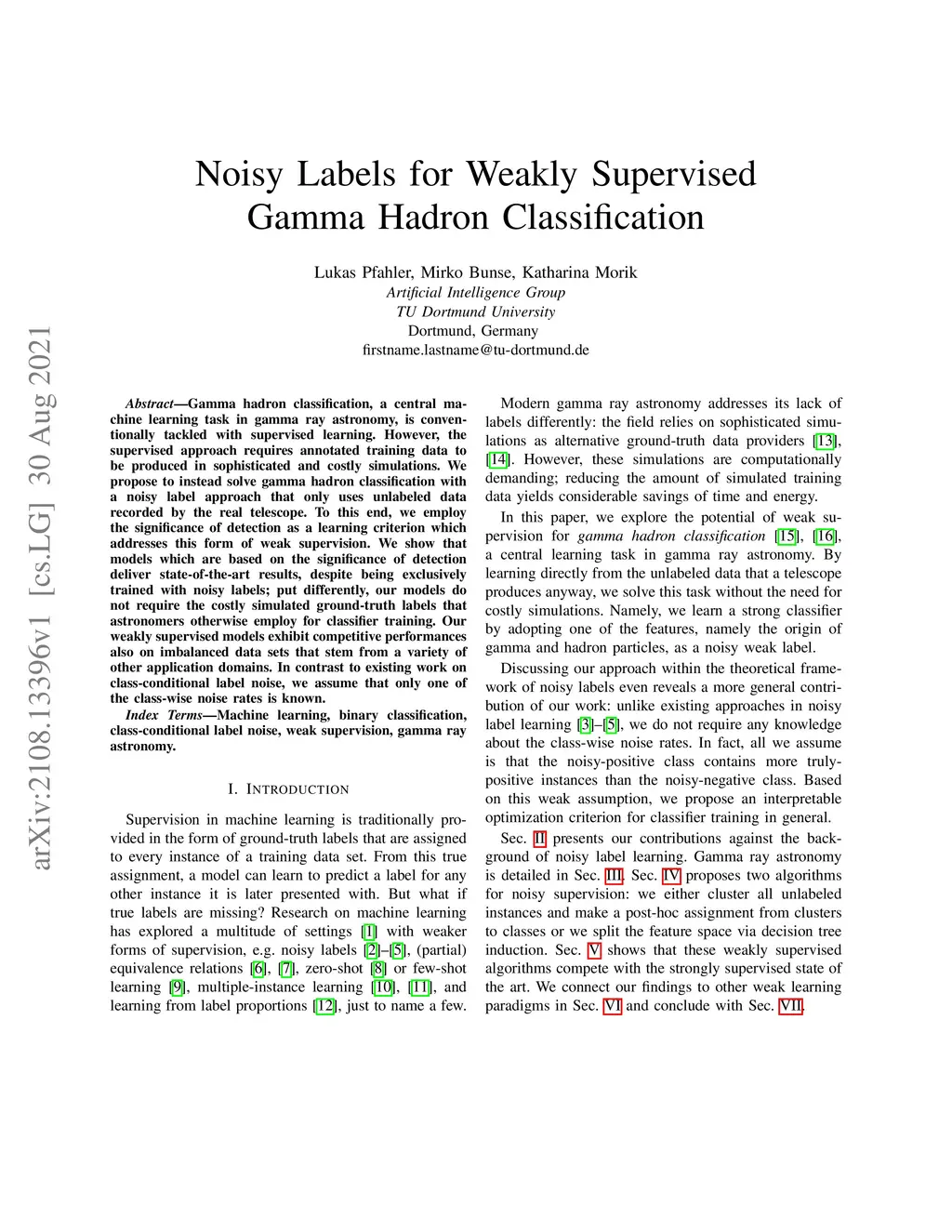 Noisy Labels for Weakly Supervised Gamma Hadron Classification